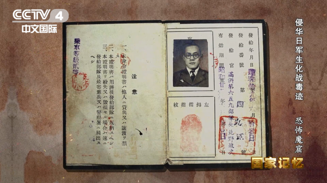 这是当时731部队成员冲岛袈裟春的身份证明书,上面详细写明了发证日期、发给番号、发证者的信息,就连左手拇指指纹都进行了录入。证明书附注部分还写明:本身份证明书禁止出借或转让给他人,使用完毕后须返还发证部队,遗失或损坏,须立即向发证部队及最近宪兵队或警察署申报。